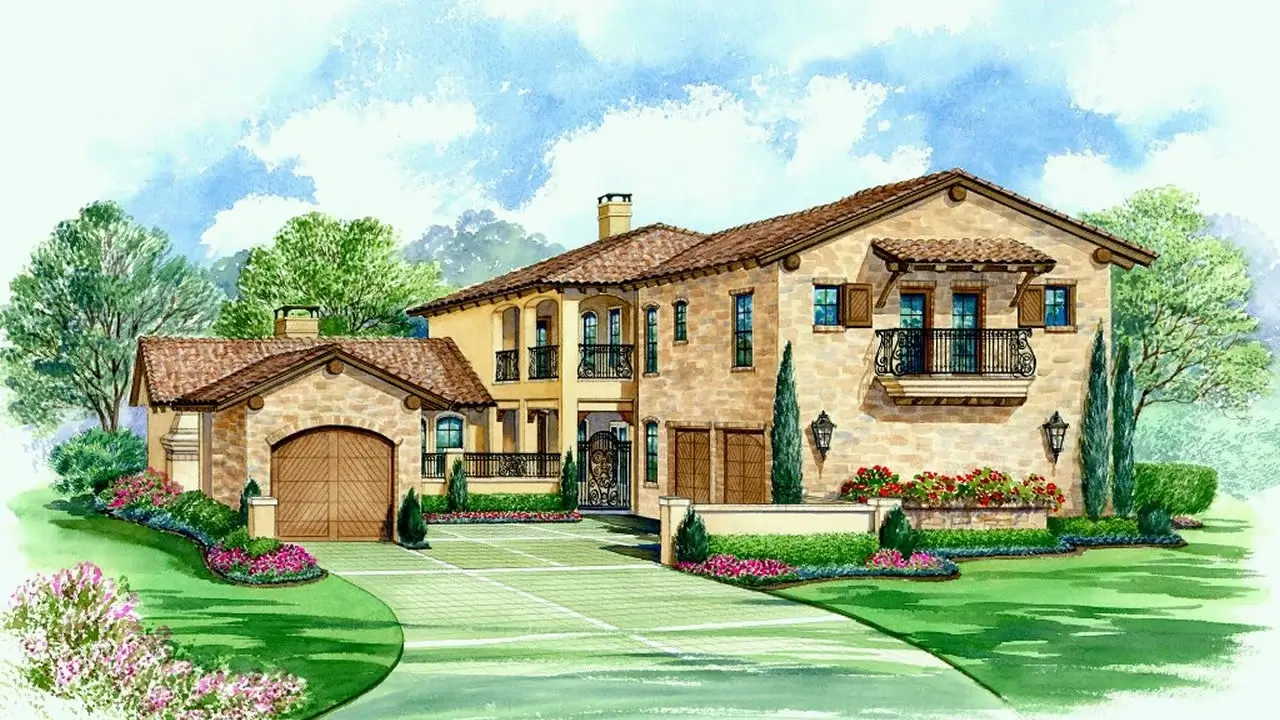 Rialto is a gracious Mediterranean retreat built around a captivating central courtyard, where sunlight, water, and architecture work together to create a home that feels both intimate and beautifully expansive. Stone detailing, arched openings, wrought-iron balconies, and warm tile roofing give this residence its timeless Tuscan character — while thoughtful interior planning makes it wonderfully suited for modern living.
